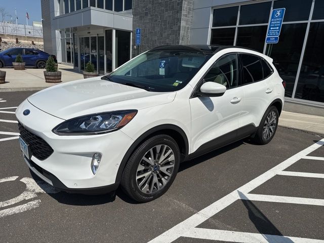 2021 Ford Escape White Metallic ***LOW MILES***, ***CARFAX ONE OWNER VEHICLE***, ***CLEAN CARFAX history report***, GARAVEL CERTIFIED, GPS Navigation, Power Sunroof, Escape Titanium, 4D Sport Utility, EcoBoost 2.0L I4 GTDi DOHC Turbocharged VCT, 8-Speed Automatic, AWD, White Metallic, Sandstone Premium Synthetic, Class II Trailer Tow Package, Equipment Group 401A, FordPass Connect, Navigation System, Radio: B&O Sound System by Bang & Olufsen, SYNC 3 Communications & Entertainment System, Voice-Activated Touchscreen Navigation System. EcoBoost 2.0L I4 GTDi DOHC Turbocharged VCT 8-Speed Automatic AWD