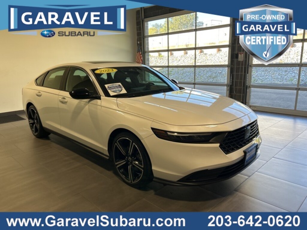 2023 Honda Accord Hybrid White ***PRICE REDUCED***, ***NEW BRAKES***, ***NEW TIRES***, ***CLEAN CARFAX history report***, GARAVEL CERTIFIED, Accord Hybrid Sport, 4D Sedan, 2.0L 16V DOHC, eCVT, FWD, White, Cloth. 2.0L 16V DOHC eCVT FWD