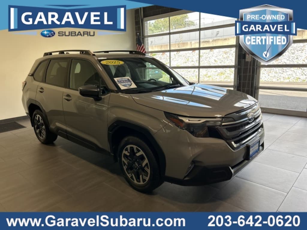 2025 Subaru Forester River Rock Pearl ***PRICE REDUCED***, ***LOW MILES***, ***CARFAX ONE OWNER VEHICLE***, ***CLEAN CARFAX history report***, ***EYESIGHT SAFETY***, ALLSTATE CERTIFIED, Power Sunroof, Forester Premium, 4D Sport Utility, 2.5L 4-Cylinder DOHC 16V, Lineartronic CVT, AWD, River Rock Pearl, Black Cloth. 2.5L 4-Cylinder DOHC 16V Lineartronic CVT AWD